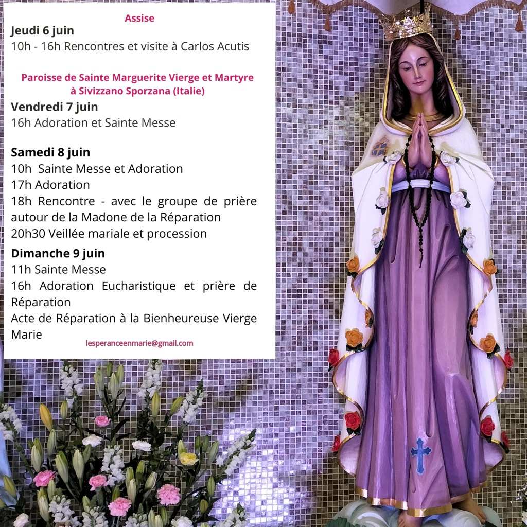 Nombre d’entre vous n’ont pas l’opportunité de vous déplacer à la Chapelle de la Réparation en France, c’est donc la Madone qui vous devance en Terre d’Italie.