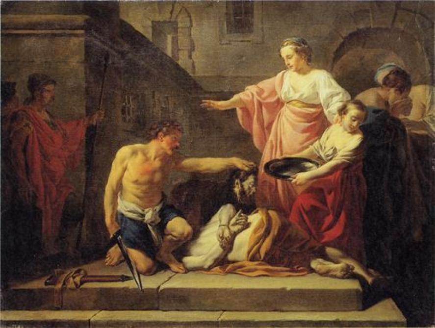 En ce temps-là, Hérode avait donné l’ordre d’arrêter Jean le Baptiste et de l’enchaîner dans la prison, à cause d’Hérodiade, la femme de son frère Philippe, que lui-même avait prise pour épouse. En effet, Jean lui disait : « Tu n’as pas le droit de prendre la femme de ton frère. » Hérodiade en voulait donc à Jean, et elle cherchait à le faire mourir. Mais elle n’y arrivait pas parce que Hérode avait peur de Jean : il savait que c’était un homme juste et saint, et il le protégeait ; quand il l’avait entendu, il était très embarrassé ; cependant il l’écoutait avec plaisir. Or, une occasion favorable se présenta quand, le jour de son anniversaire, Hérode fit un dîner pour ses dignitaires, pour les chefs de l’armée et pour les notables de la Galilée. La fille d’Hérodiade fit son entrée et dansa. Elle plut à Hérode et à ses convives. Le roi dit à la jeune fille : « Demande-moi ce que tu veux, et je te le donnerai. » Et il lui fit ce serment : « Tout ce que tu me demanderas, je te le donnerai, même si c’est la moitié de mon royaume. » Elle sortit alors pour dire à sa mère : « Qu’est-ce que je vais demander ? » Hérodiade répondit : « La tête de Jean, celui qui baptise. » Aussitôt la jeune fille s’empressa de retourner auprès du roi, et lui fit cette demande : « Je veux que, tout de suite, tu me donnes sur un plat la tête de Jean le Baptiste. » Le roi fut vivement contrarié; mais à cause du serment et des convives, il ne voulut pas lui opposer un refus. Aussitôt il envoya un garde avec l’ordre d’apporter la tête de Jean. Le garde s’en alla décapiter Jean dans la prison. Il apporta la tête sur un plat, la donna à la jeune fille, et la jeune fille la donna à sa mère. Ayant appris cela, les disciples de Jean vinrent prendre son corps et le déposèrent dans un tombeau. – Acclamons la Parole de Dieu.