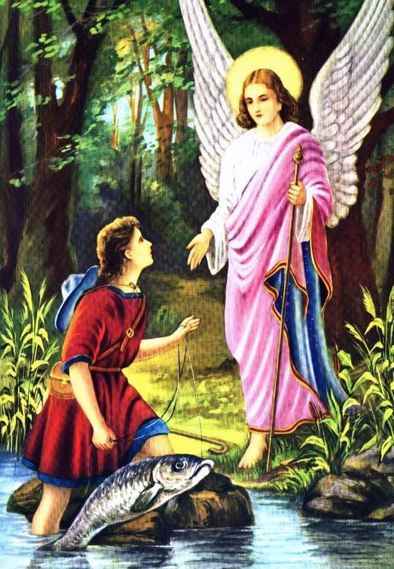 « Venez à mon secours, je vous en supplie, glorieux prince, saint Raphaël, le meilleur médecin des âmes et des corps. O vous qui avez guéri les yeux de Tobie, donnez à mes yeux la lumière physique et à mon âme la lumière spirituelle ; éloignez de moi toutes les ténèbres par vos célestes supplications. Ainsi soit-il. »
