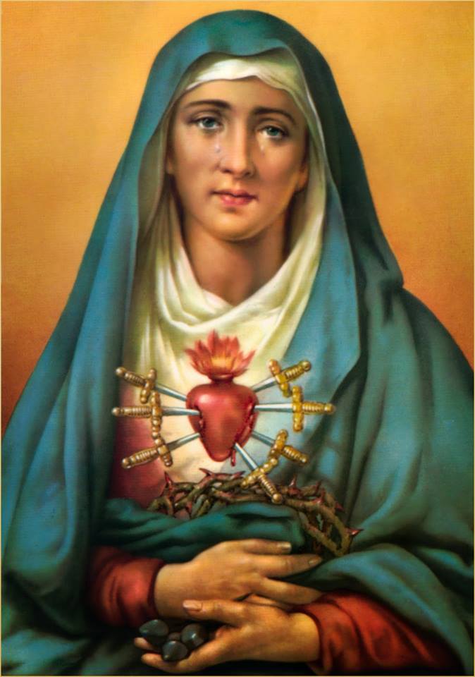Mon Seigneur Jésus-Christ crucifié, ne permettez pas qu’aucune âme se perde, puisque Vous nous placez sous les ailes de la protection de Votre très aimante Mère comme enfants de Ses Douleurs, nés au sein de Ses Larmes, principalement, Seigneur, ceux qui s’unissent à Elle en faisant cette sainte neuvaine en mémoire de Ses Douleurs. Se confessant, qu’ils évitent l’enfer. Que ses fils, ses serviteurs, soient favorisés de ses larmes et baignés de Votre Précieux Sang, pour qu’à l’heure de notre mort, Vous nous receviez comme Ses enfants. Amen.