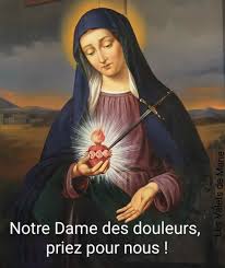 Reine des Martyrs, Marie, Mère de Douleurs ! Au nom de cette Douleur très vive que vous avez éprouvée en voyant frapper d’un coup de lance le cœur de Jésus déjà mort, blessure qui fut ressentie par votre âme tout entière, laquelle ne pouvait se séparer du cœur de Jésus ; je vous supplie de m’obtenir de votre Fils qu’il blesse lui-même mon cœur d’un trait de son amour, et de telle sorte que je ne puisse plus me séparer de Lui, ni de Vous, dans le temps et dans l’éternité. Amen