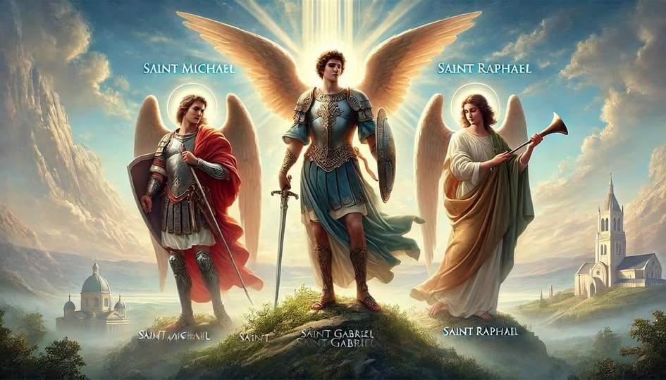 - L’archange Michel, mentionné dans le Livre de Daniel (Dn 10, 13.21) et dans l’Apocalypse de saint Jean (Ap 12,7), est le prince des anges, vainqueur de Satan dans le combat de la fin des temps ; son nom signifie « Qui est comme Dieu ? ».