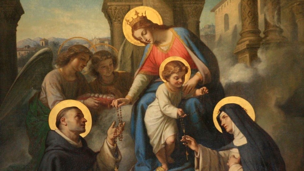 Un trait fondamental des dominicains, et de leur fondateur avant tout, fut la dévotion extraordinaire à la Sainte Vierge. Marie en personne apparut à Saint Dominique en lui indiquant le Sainte Rosaire comme l’arme la plus efficace contre les hérésies des Cathares et des Albigeois. De nouveau aucune violence, aucune prévarication, mais la prière la plus chère à la Mère du Sauveur en tant qu’instrument de foi et de conversion.