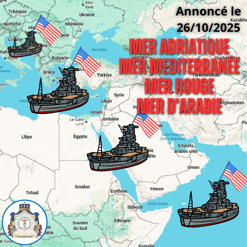 Dans son Message ce soir, Notre Dame a donné des prophéties très claires sur deux zones spécifiques: Svalbard (Arctique) et sur le déplacement de flottes américaines en provenance Mer d’Arabie, de la Mer Rouge, de la Mer Méditerranée ou de la Mer Adriatique vers soit le Venezuela; soit l’Arctique.