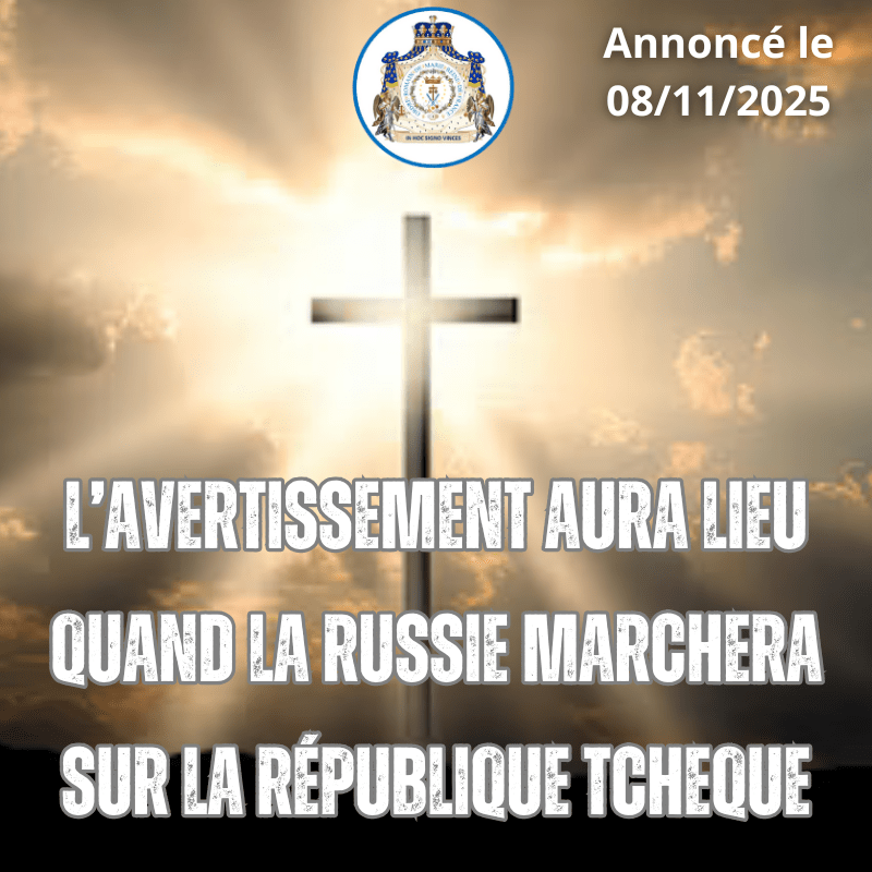 Chers frères et sœurs, le moment de l’avertissement il est là, parce que nous verrons la croix de notre Seigneur suspendue dans le Ciel. Prions chers frères et sœurs, et réparons pour ceux qui sèment la confusion dans l’esprit des fidèles, qui inventent des messages, des apparitions pour nuire aux vrais messagers et aux vrais messages. Que l’on cesse de crier toutes les semaines et tous les mois que c’est l’avertissement. Il n’y aura pas d’avertissement tant que la Russie n’aura pas attaqué la République Tchèque. C’est cette dernière explosion dans l’Ouest de la République Tchèque qui fera que la croute terrestre puisse se fendre et nous verrons le Seigneur crucifié, animé avec ses plaies. Il y aura une explosion de couleur blanche jaune qui projetteront des flammes jusqu’au Ciel.