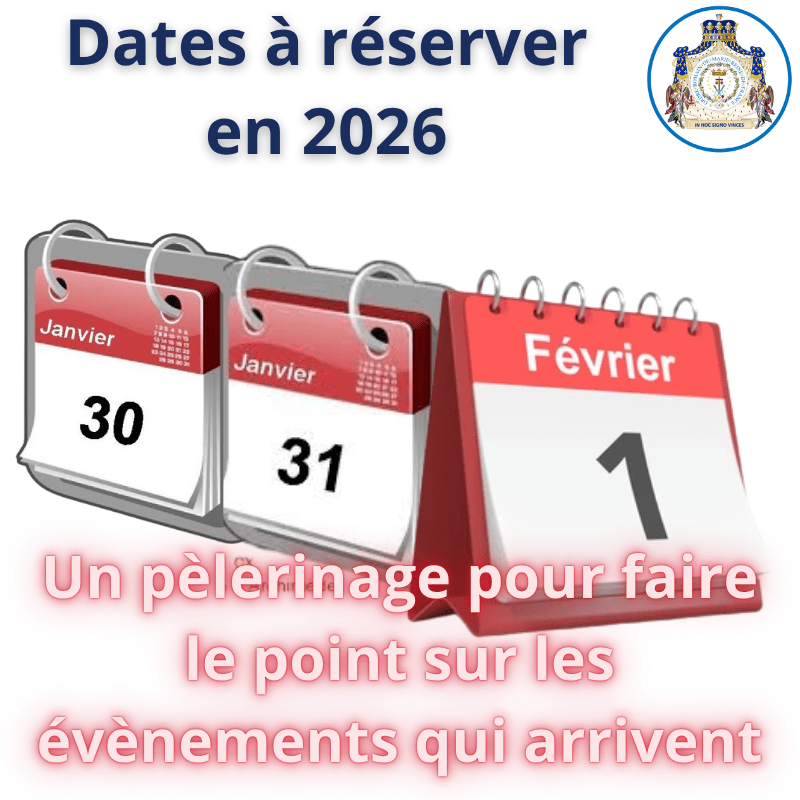 Vous pouvez d’ores et déjà réserver votre week-end du 30, 31 janvier et 1er février 2026. Il sera organisé un pèerinage sur le thème des évènements à venir.