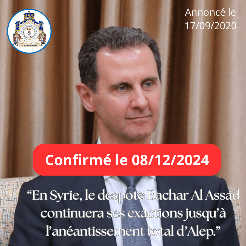 Le 8 décembre 2024, il y a tout juste un an, ce message se réalisait. L’anéntissement d’Alep a mis fin aux exactions de Bachar Al Assad; dont le régime est tombé.
