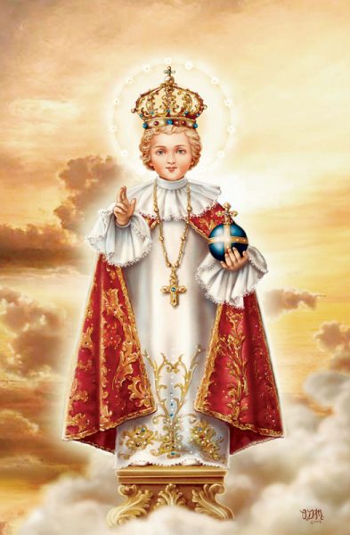 Ô Saint Enfant-Jésus de Prague, notre Roi, par les mains de la Vierge Marie, je me consacre à Vous. Gardez-moi sous votre puissante protection. Préservez-moi des maladies et de toute influence malsaine, gardez-moi pur et qu’à votre exemple je croisse en grâce et en vertu devant Dieu et devant les hommes !