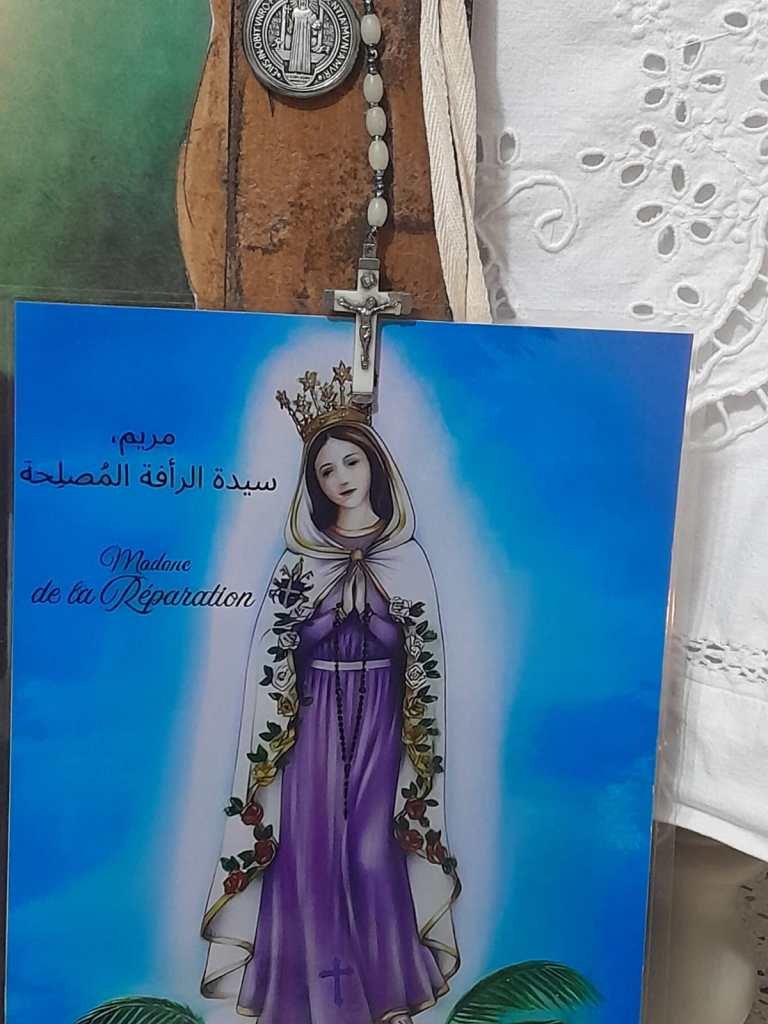 Mon bras a été guéri un soir où La Madone de la Réparation est venue (Pendant la semaine d’apparitions publiques du 8 au 15 septembre). J’avais très mal car c’est le bras droit que j’ai eu de cassé et comme nous avons démontré un abris de jardin. Nous avons beaucoup travaillé et mon bras me faisait extrêmement mal. A la fin de l’apparition la douleur avait disparue et elle n’est pas revenue. Merci ma tendre Mère pour tous les bienfaits que vous nous obtenez par votre incessante supplique auprès de votre divin Fils.